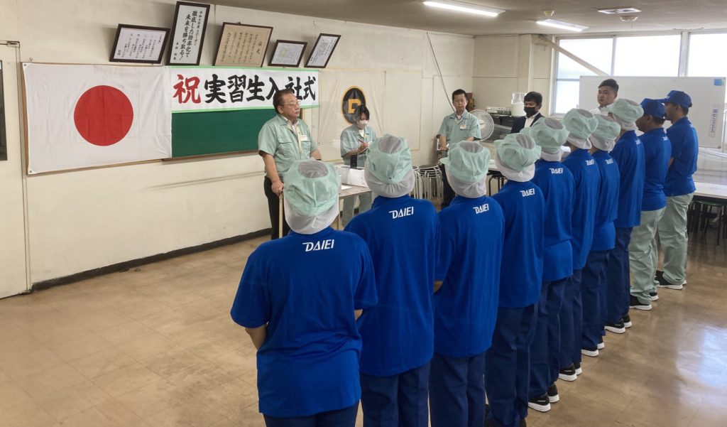 新しく10名の技能実習生が入社しました。式では、社長からの歓迎の言葉が贈られた後、実習生代表の挨拶が行われました。技能実習生の皆さんが安心して働き、成長できる環境づくりに、社員一同努めてまいります。